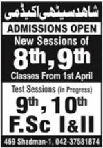 - Intermediate: F.Sc Part I and Part II.