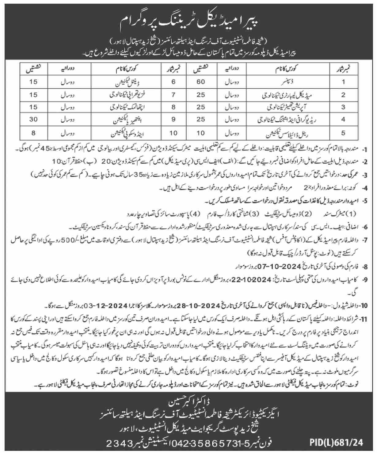 Zayed Post Graduate Medical Institute, Peshawar is now accepting applications for ZPGMI Admissions 2024. The institute offers specialized Diplomas in Cardiology, Dialysis, and Radiology, catering to medical professionals seeking advanced qualifications.