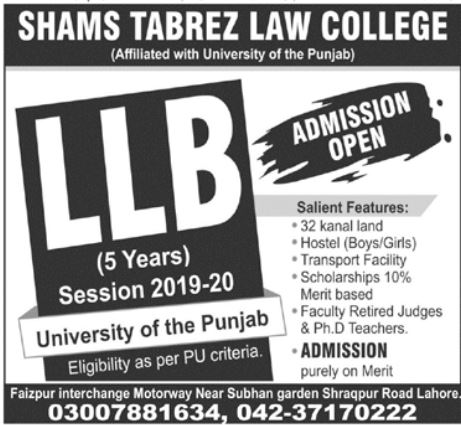 Shams Tabrez Law College Lahore Admissions 2019