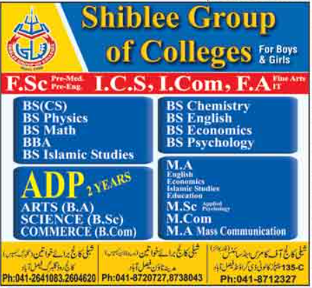Shiblee Group of Colleges invites applications for admissions 2020 for Fsc Pre Medical, Pre Engineering, ICS, ICom, FA, BS Computer Science BSCS, Physics, Maths, BBA, BA Islamic Studies, BS Chemistry, Chemistry, English, Economics, Psychology, ADP in Arts, Science, Commerce and many more in Faisalabad.