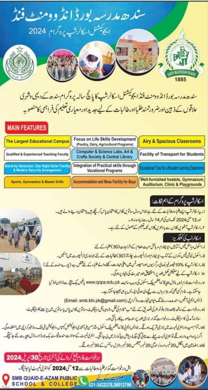 Sindh Madrassah Board Endowment Fund has the five years educational scholarship program, which is introduced to support the intelligent and needy students of the rural and urban areas of Sindh. This program ensures the provision of modern and standardized education to the students through its vast network of modern and unique educational facilities, classes and equipment. The students can get the latest updates of Sindh Madrassah Board Endowment Fund Education Scholarship 2024. All such intelligent and needy students, who come up to the eligibility of this scholarship program, they can submit their application forms within given schedule.