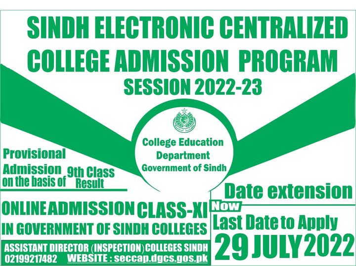 The government of Sindh has started SECCAP program 2022 for the students, who want to obtain admission in all government colleges in Sindh province. Sindh government, College Education Department has issued their Sindh SECCAP College Admission Program 2022 Extended Schedule. The students can submit their application forms online by the extended date of 29-07-2022. The candidates can note this extension in submission of their admission forms online and they will forward their admission forms within given criteria.