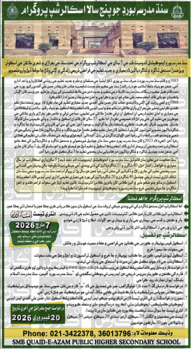 Sindh Madrasa Board SMB has officially announced SMB Scholarship 2026, offering a powerful opportunity for deserving students to receive quality and modern education through a structured five-year Scholarship 2026 program. This initiative targets students from coastal and urban areas of Sindh who lack financial resources but have strong academic potential, making it one of the most impactful educational support programs in the region.