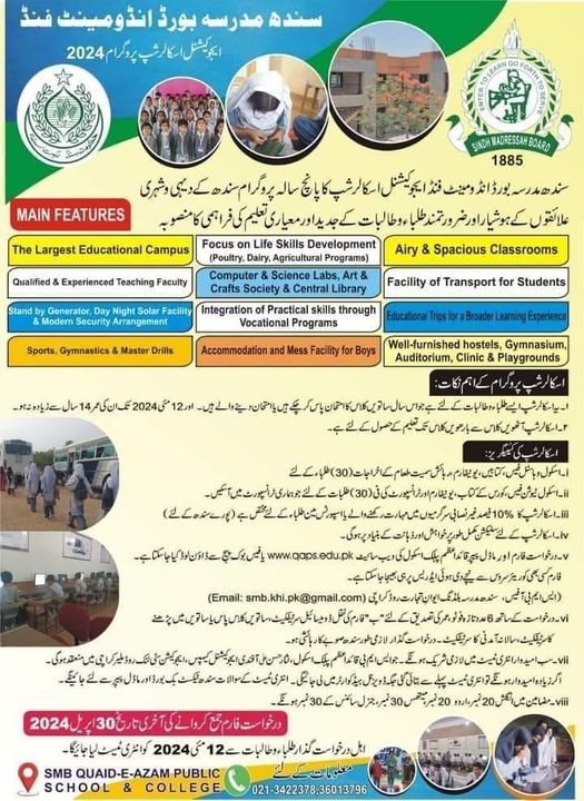 Sindh Madrassah Board Endowment Fund is going to offer the educational scholarship program to the intelligent and needy students of the rural and urbran areas of Sindh province. The main objective of the provision of the SMBEF Educational Scholarship Program 2024 is to support the most talented students to get latest and modern education under this project. The students can get the detailed information of SMBEF Educational Scholarship Program 2024 Schedule.
