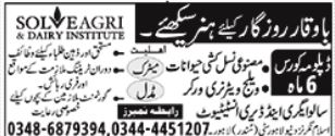Solve Agri & Dairy Institute Lahore is offering the Solve Agri & Dairy Institute Lahore Admissions 2022. Candidates who want to enroll in Solve Agri & Dairy Institute Diploma Admissions 2022 are being invited on prescribed admission form. Solve Agri & Dairy Institute Diploma Courses Admissions 2022 are open in Artificial Breeding, Village Veterinary Worker. Candidates who have passed Matric exam or Middle are eligible to apply for Solve Agri & Dairy Institute Lahore Courses Admissions 2022. Solve Agri & Dairy Institute Lahore Admissions 2022 are open now.