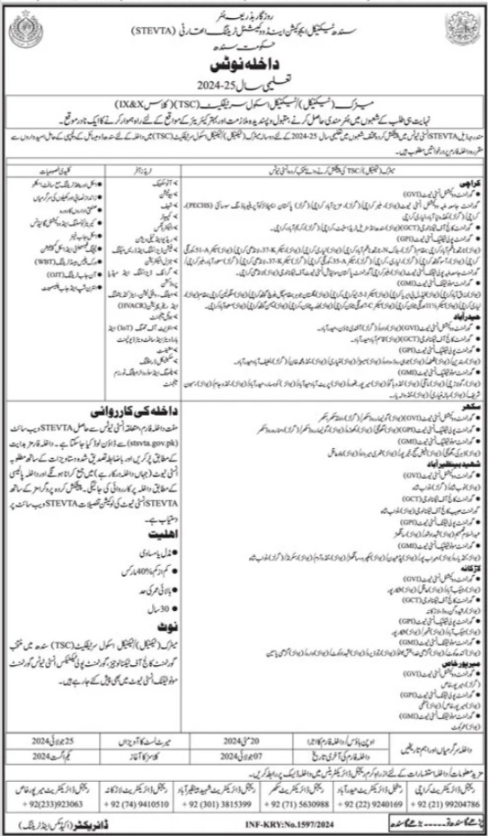 The Sindh Technical Education & Vocational Training Authority STEVTA, under the auspices of the Government of Sindh, has announced admissions for the academic year 2024-25. This is a golden opportunity for students to enroll in the two-year Matric Technical School Certificate - TSC programs offered by STEVTA institutions. These programs are designed to equip students with in-demand skills, leading to lucrative job opportunities and a prosperous career.