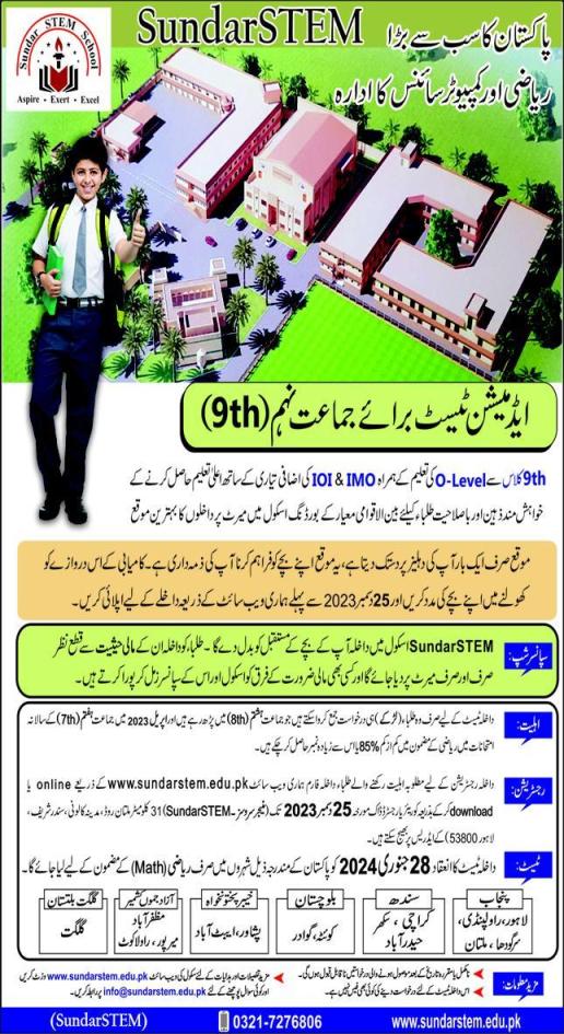Sundar STEM School SSS is offering comprehensive scholarships for students ranging from class 9 to A-Level. These scholarships encompass all educational expenses, including tuition fees, hostel accommodations, meal plans, and laundry services. Sundar STEM School specializes in Mathematics and Science education from Year 9 through A-Levels CIE/GCE. To apply for Sundar STEM School Fully-Funded Scholarships, please submit your application by December 15, 2023.