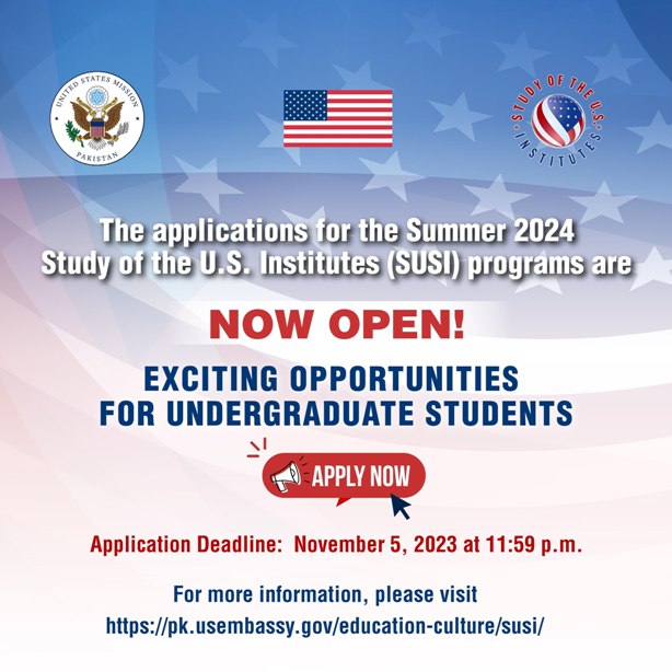 We are excited to announce a fantastic opportunity for undergraduate students from Pakistan who have a keen interest in Comparative Public Policymaking. Youre invited to apply for the Study of the United States Institute for Student Leaders SUSI Exchange Program, which offers an enriching academic experience. This fully funded six-week program will take place at the University of Massachusetts, starting from late June to early August 2023, provided it can be conducted in person. The students can get the detailed information regarding SUSI Exchange Program in USA Opportunity for Pak Students.