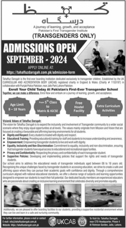 Tahaffuz Darsgah Pakistans First Transgender Institute Admission 2024