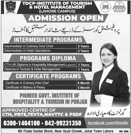 TDCP Institute of Tourism & Hotel Management Lahore Your Gateway to a Promising Future open admission 2023