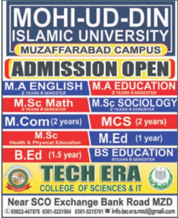 Tech Era College of Sciences & IT MA MSc admissions 2020
