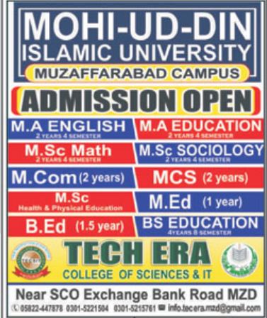 Tech Era College of Sciences & IT MA MSc admissions 2020
