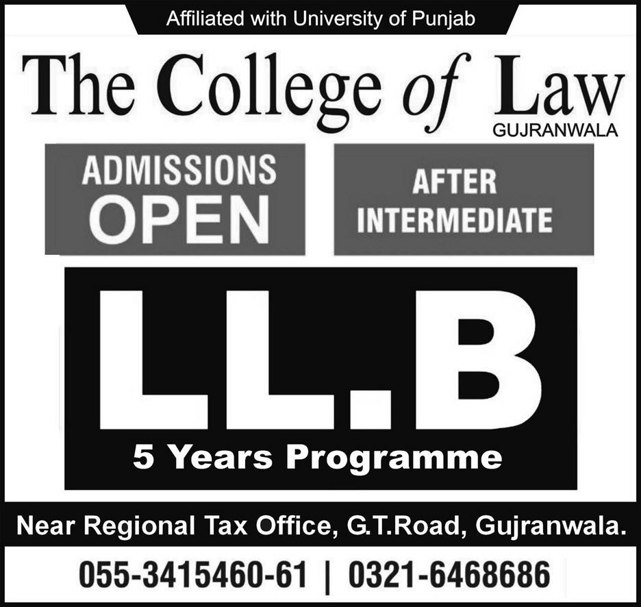 The College of Law Gujranwala Admissions 2019