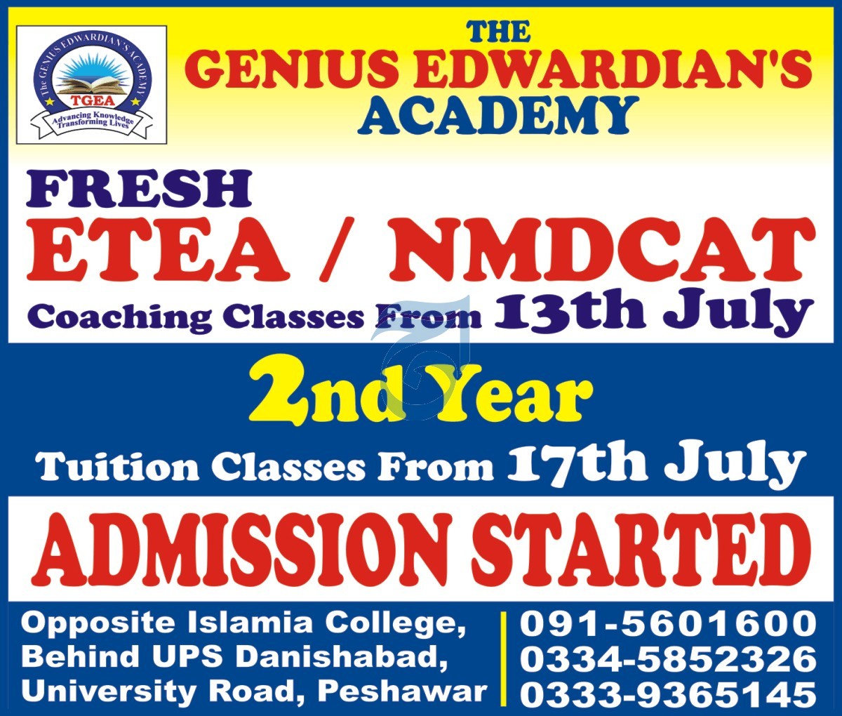 The highly regarded Genius Edwardians Academy proudly announces the commencement of admissions for the year 2023. Offering preparatory classes for 2nd-year students and specialized coaching for ETEA/NMDCAT exams, the academy promises a nurturing environment to foster academic excellence. With a legacy of producing scholars and achievers, the institution prioritizes holistic growth, equipping students with the necessary tools to excel in their chosen fields.