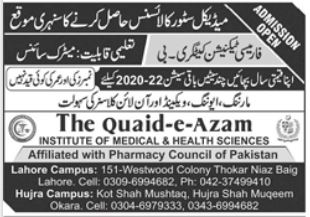 The Quaid-e-Azam Institute of Med Health Sci Admissions 2021