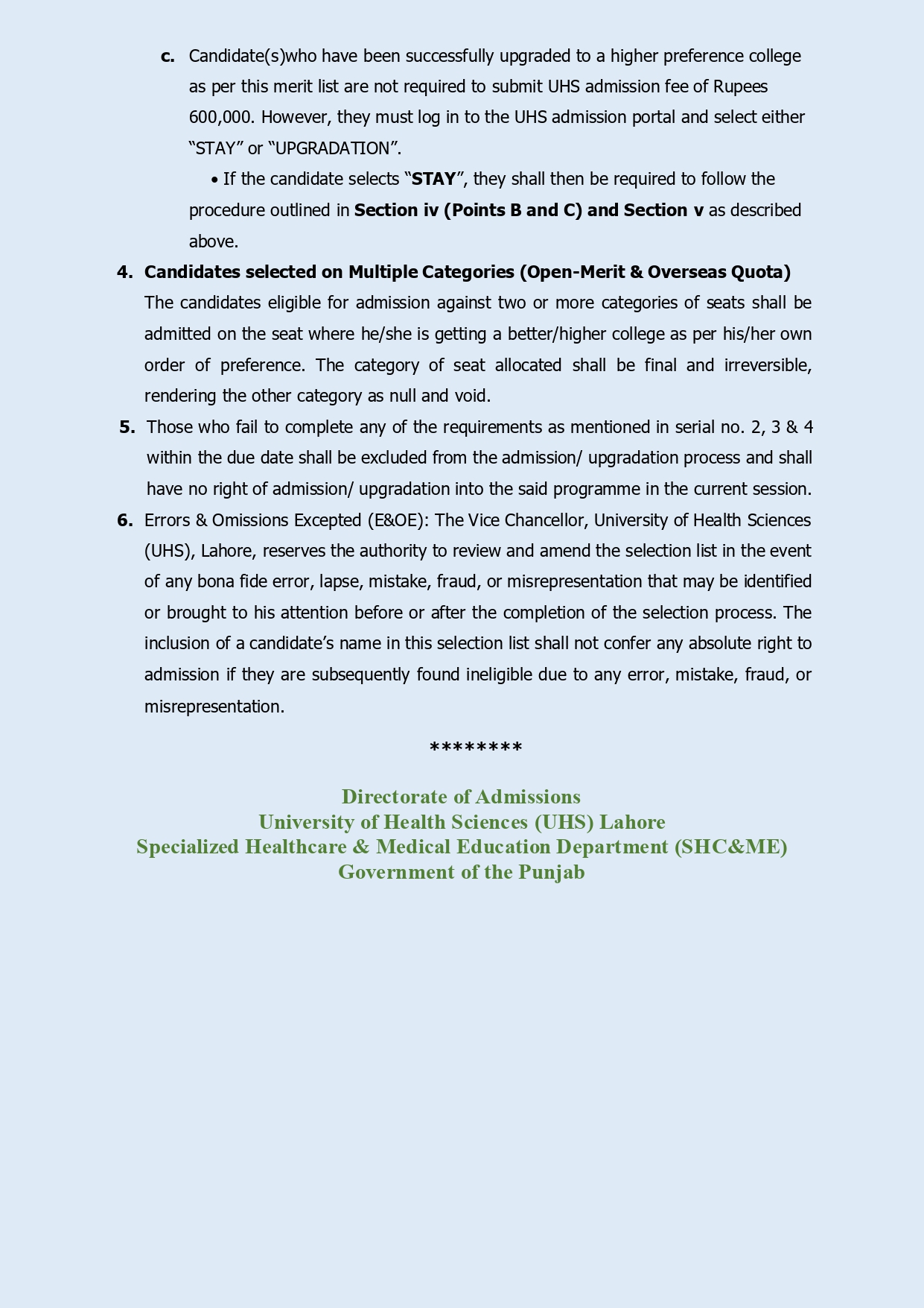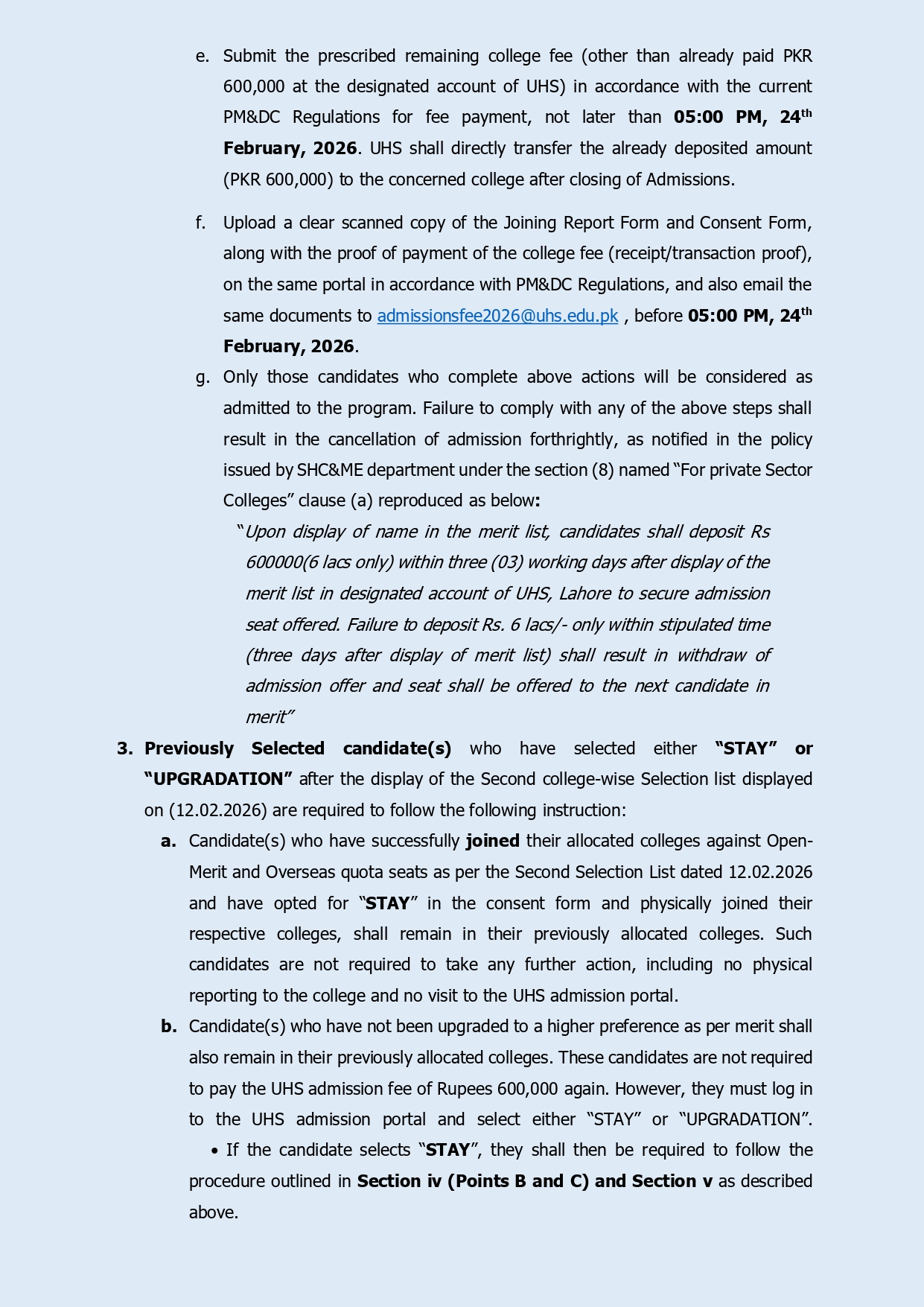 Candidates whose names appear on the college wise selection list are advised to complete admission formalities within the stipulated deadline to confirm their seats. University of Health Sciences Lahore UHS continues to ensure a fair and structured admission process for dental programs across the province. Students should regularly monitor official notifications to avoid missing important deadlines or further merit updates.