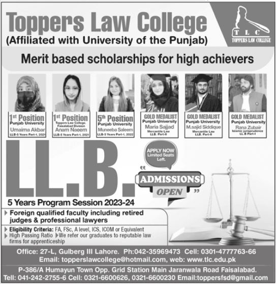 TLC Toppers Law College Faisalabad LL.B Admission 2023