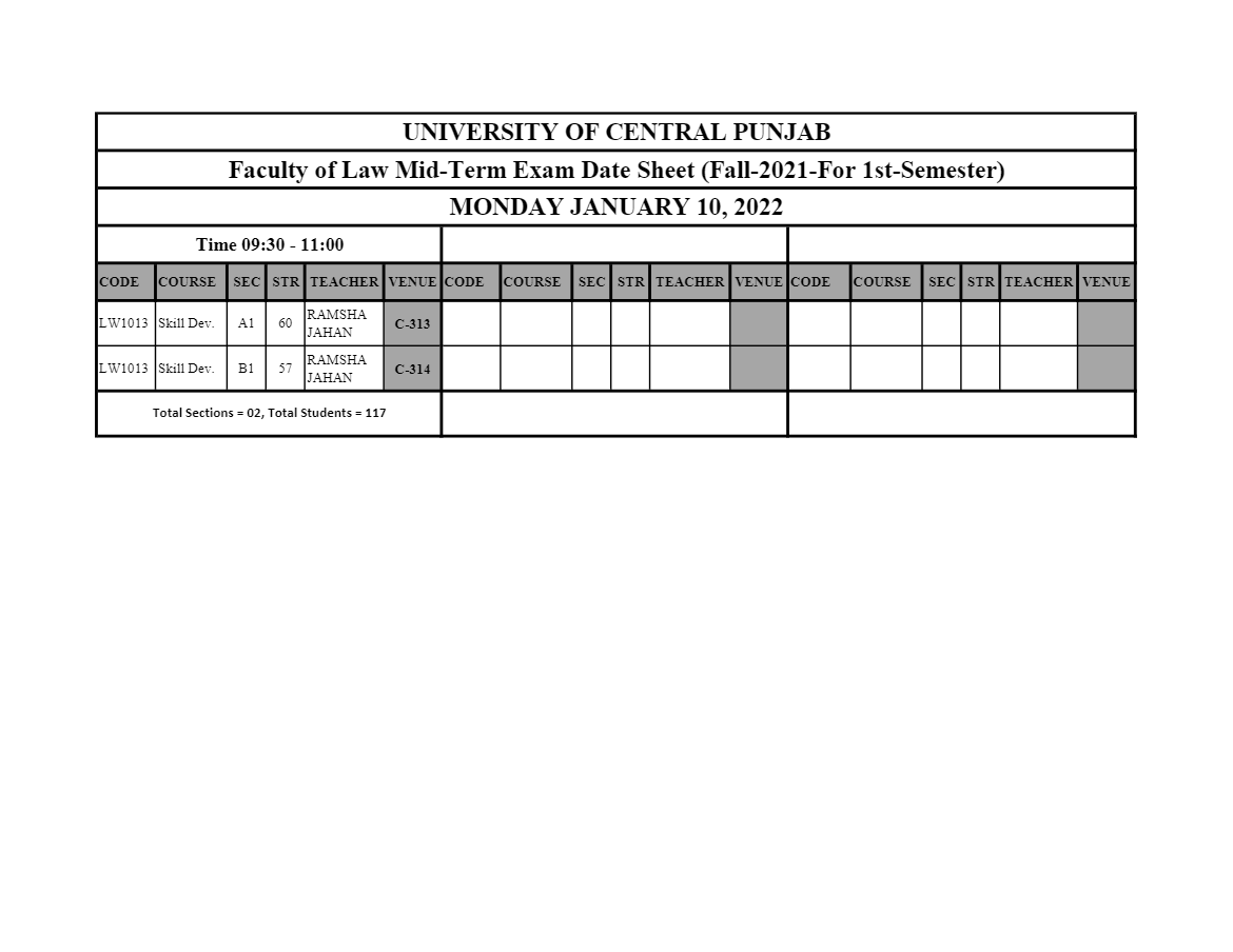 University of Central Punjab Lahore Examinations Department is announced to inaugurate the Faculty of Law Mid Term Fall Examination 2021 for the First Semester Students. For holding the Exam UCP Lahore has finalized the Examination Schedule and announced the Date Sheet for the 1st Semester Students who have linked with Faculty of Law. Candidates must follow the Examination Schedule according to their Respective code/subject. Candidates are directed to reach at Examination Hall/Area 15 minute before for checking their seating arrangement. Candidates shall start implementation on Exam Schedule from January 10, 2022. Papers commencing Timings is 9:30 am and wind up till 11:00 am. Candidates must follow all rules and regulation regarding Examinations.