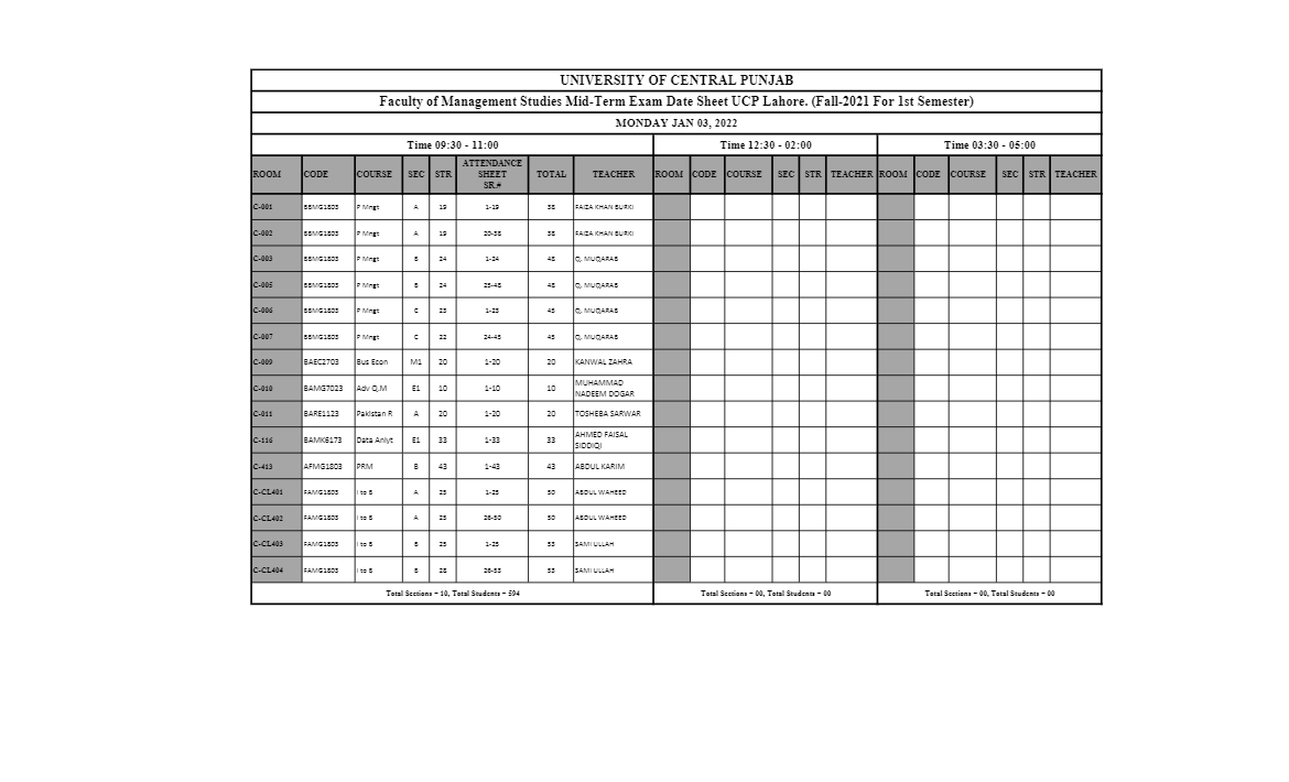 University of Central Punjab Lahore Examinations Section updated Date Sheet for commencement of Faculty of Management Studies Mid Term Examination Fall 2021 for the First Semester Students. Students who were preparing to appear in Mid Term Examination Fall 2021 are intimating to follow UCP announced schedule to appear in Examination. University of Central Punjab Lahore has scheduled Fall Examination 2021 that is going to be started in the month of January. Candidates shall started the implementation of Exam Schedule from January 03, 2022. UCP Lahore has accepted Examination Forms from concerned candidates who are appearing in Exam. Candidates are advised to check their Examination commencement timings carefully and Follow prescribed SOPs instructions for the prevention of Covid-19.