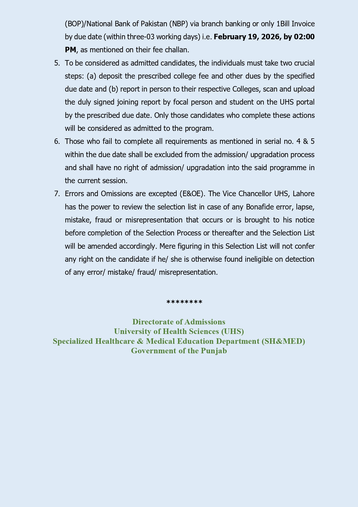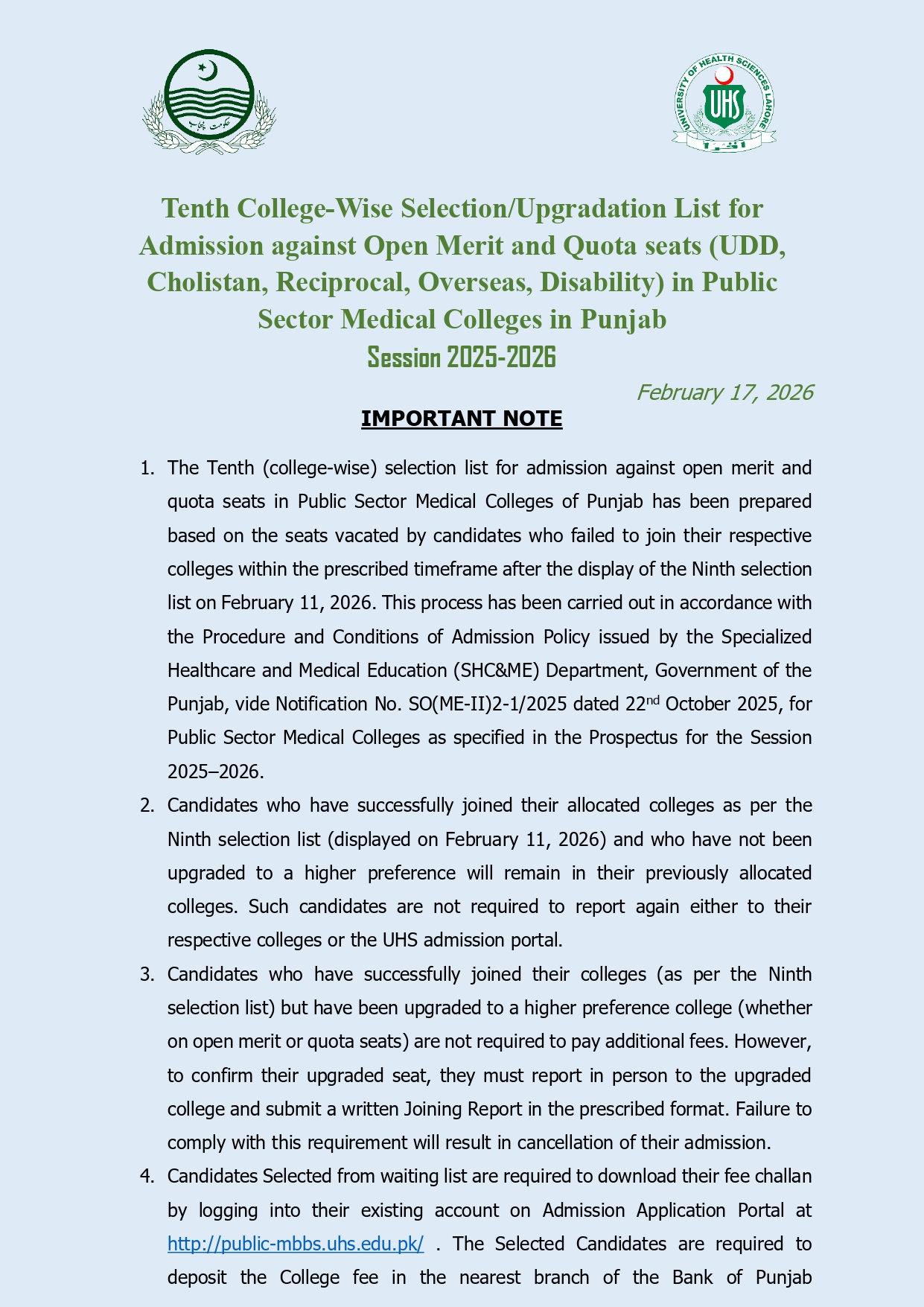 The newly issued college wise selection list reflects ongoing merit adjustments under both open merit seats and quota seats in Punjab dental colleges. As the central admitting authority, UHS University of Health Sciences ensures transparency and fairness in the UHS admission 2025-2026 cycle. Candidates who find their names on the tenth list must carefully review their allocated college and complete all required admission formalities within the given deadline.