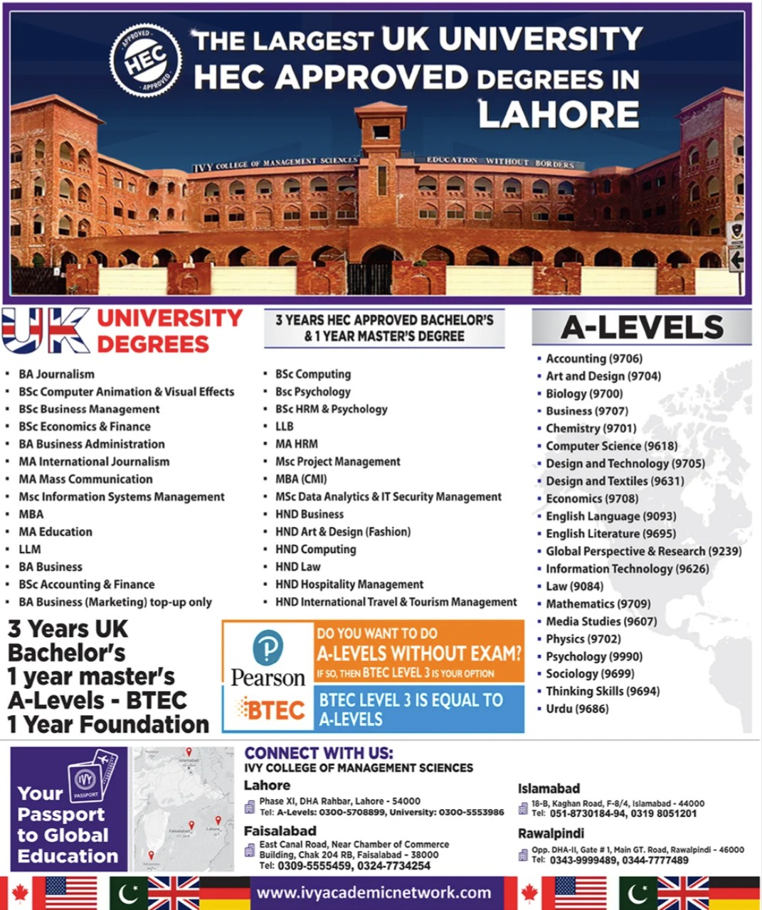 UK University Admissions 2024 are now open, offering a unique opportunity for students to enroll in a range of programs including Bachelors, Masters, and A Levels. Located in Lahore, this esteemed institution provides HEC approved degrees, ensuring that graduates receive qualifications recognized both locally and internationally.