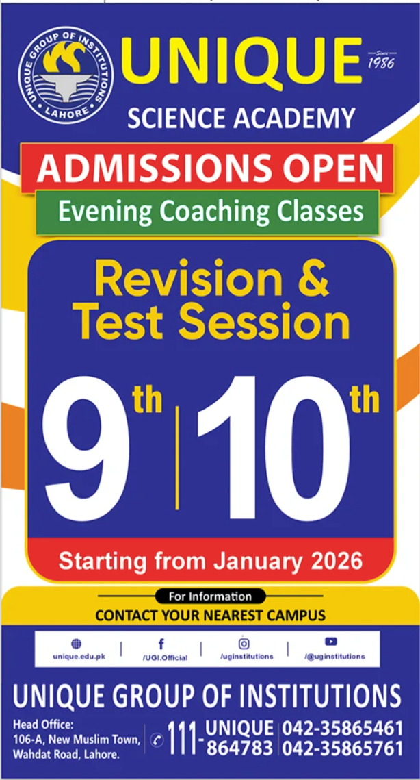 Unique Group of Institutions proudly announces that admissions for Class 9th and 10th are now open for the session starting January 2026. We are dedicated to providing a high-quality learning environment where students can excel academically, develop leadership skills, and prepare for a successful future.