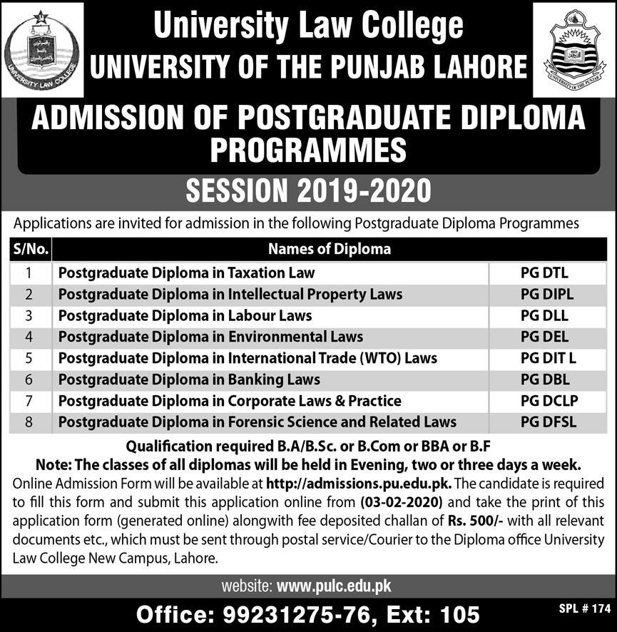 University Law College Post Graduate Admission 2020