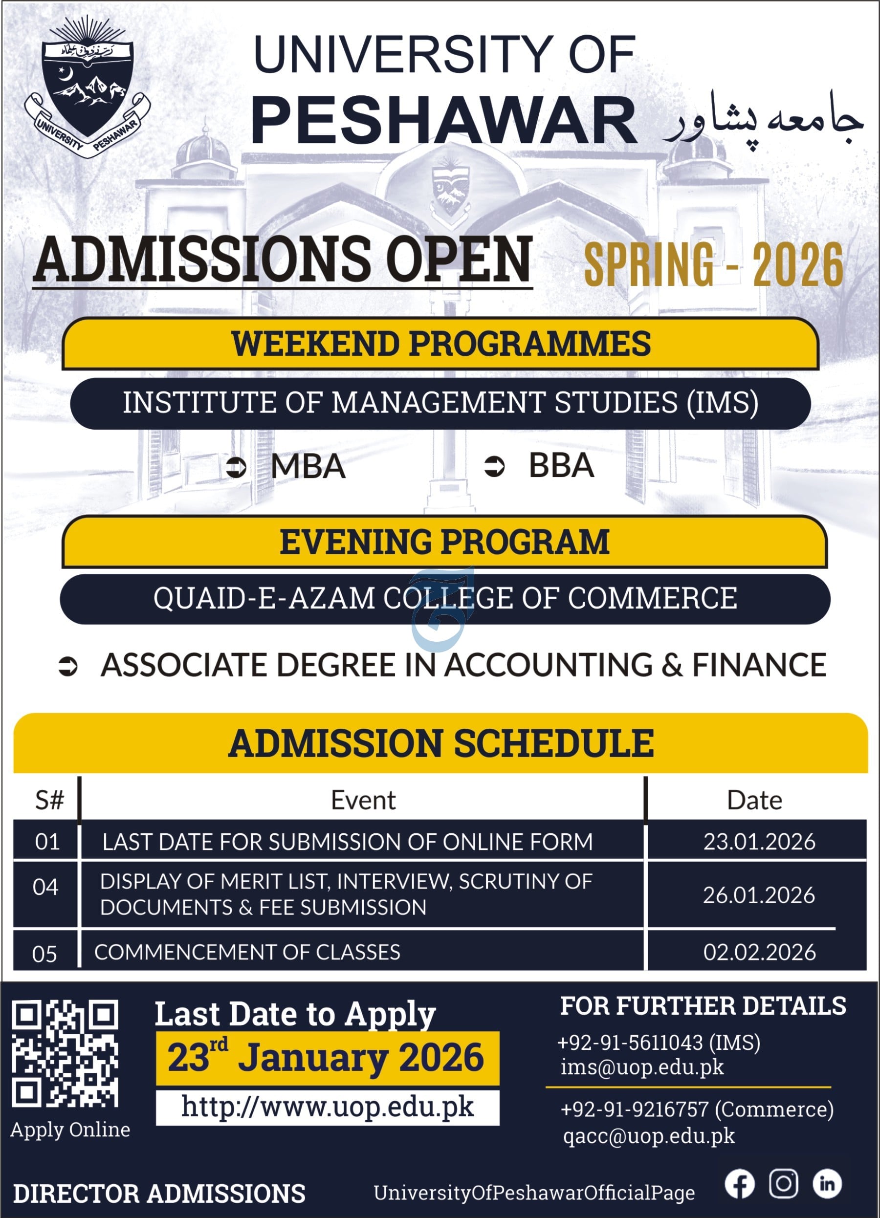 For applicants seeking authentic guidance, University of Peshawar encourages candidates to rely only on official communication channels, including its website and admission offices. With thousands of graduates contributing to national development, UoP Admissions 2026 represent a golden opportunity for ambitious students to secure a future-oriented education.