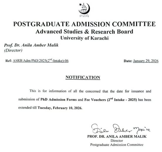 University of Karachi has already announced the schedule for the acceptance of the admission forms and fee voucher for the PhD programs 2nd intake for the year 2025. The students started submission of the admission forms for the PhD program and now the exams section of Karachi University are facilitated by extending the last date for the submission of the admission forms and fee. The students can get the latest updates regarding UoK PhD Admission Forms & Fee 2nd Intake Extended Schedule 2025.