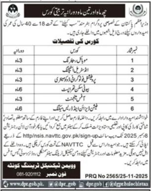 Applicants who have already completed a course under NAVTTC are not eligible for admission again.