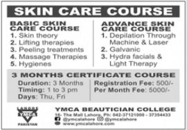 YMCA Beautician College Lahore is intended to open Admissions and inviting Applications from Aspirants for Admissions in Skin Care Courses of Basic Skin Care Course in Skin Therapy, Lifting Therapies, Peeling Treatment, Massage Therapies, Hygienes and Advance Skin Care Course in Depilation through Machine and Laser, Galvanic, Hydra facials and light Therapy. Courses duration is 3 months. Admissions are ongoing for Session 2021-22.
