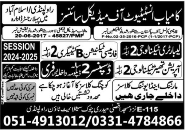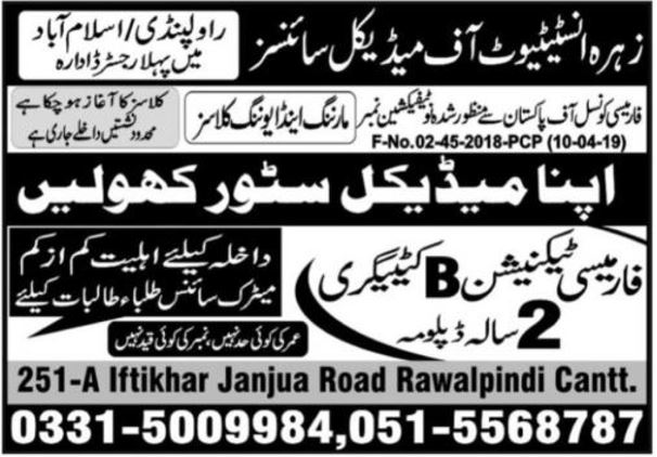 Zohra Institute of Medical Sciences ZIMS is now offering admissions for the Diploma in Pharmacy Technician program for the 2025 session. This program is specifically designed for students interested in pursuing a career in the pharmacy field, providing comprehensive training to equip them with the skills needed for success in this important sector.