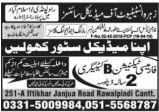Zohra Institute of Medical Science ZIMS Rawalpindi Admission 2023